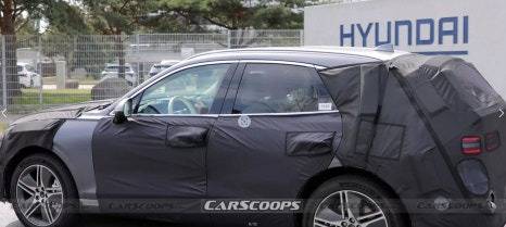 비록 두꺼운 위장막 속에 가려진 새로운 GV70 일렉트리파이어의 모습을 완전히 확인하기는 어렵지만 위장막 사이로 보이는 모습은 올해 상반기 출시한 제네시스 GV70 페이스리프트 디자인과 유사한 모습을 갖추고 있음을 짐작할 수 있겠는데 기존 두 줄 헤드램프 디자인은 첨단 기술력이 결합된 MLA 타입 헤드램프가 적용되어 있었고 전면부 라디에이터 그릴은 G-MATRIX 패턴 드릴 디자인이 적용되었고 기존과 동일하게 막혀 있는 디자인과 더불어 오른편에는 전기차 충전구가 자리잡아 있는데 해당 전기차 충전구의 경우 야간에도 편리하게 충전할 수 있도록 LED가 적용될 것으로 알려져 있으며 그 외 범퍼 하단 디자인은 기존 사다리꼴 형태에서 축소된 형상의 디자인이 적용되었고 양 측에는 주행 및 주차 관련 센서들이 자리잡고 있습니다.