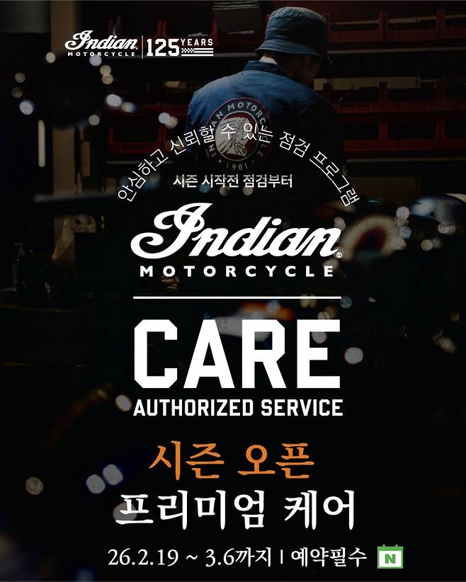 인디언 모터사이클 코리아는 본격적인 라이딩 시즌을 앞두고 2월 19일부터 3월 6일까지 약 2주간 인디언 모터사이클 오너를 위한 프리미엄 무상정비 프로그램 ‘인디언 케어’를 운영한다고 밝혔다.