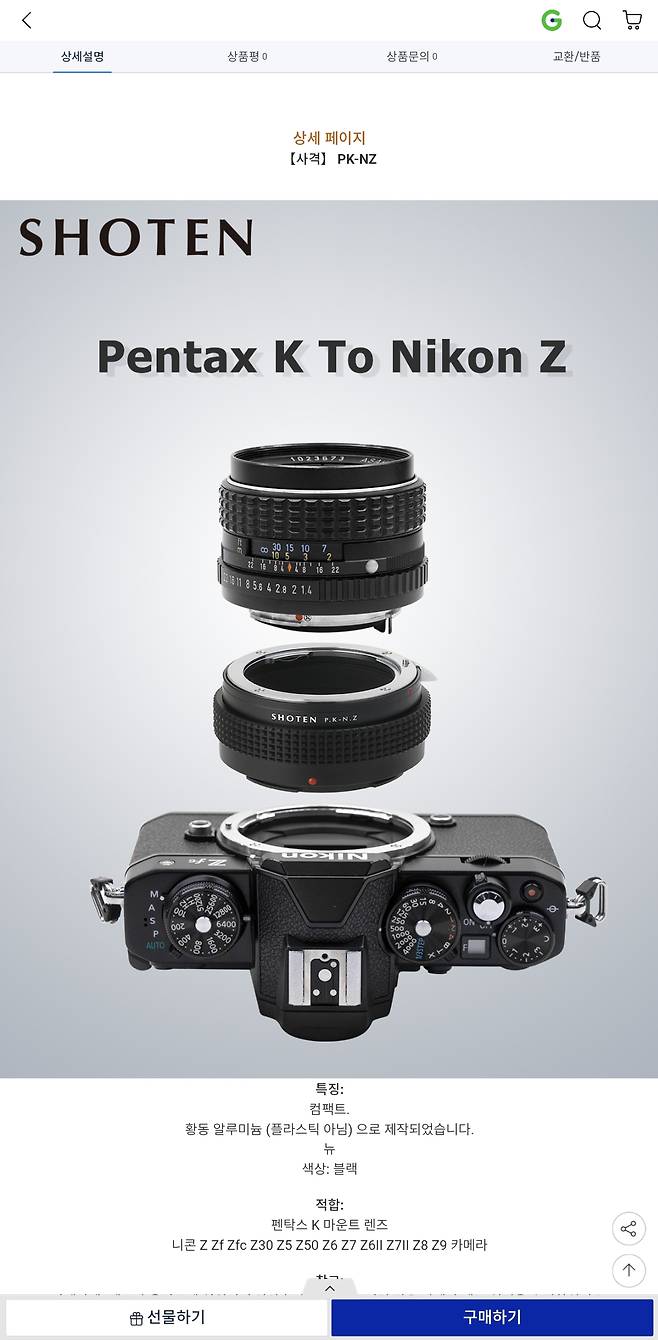유튜브 보다보니 펜탁스 렌즈를 zf에 물려서 사용하는 분이 계시네요.