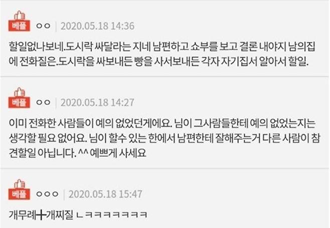 참고 : 남편 도시락 싸줬다가 동료 와이프분이 전화가 왔어요, 네이트판