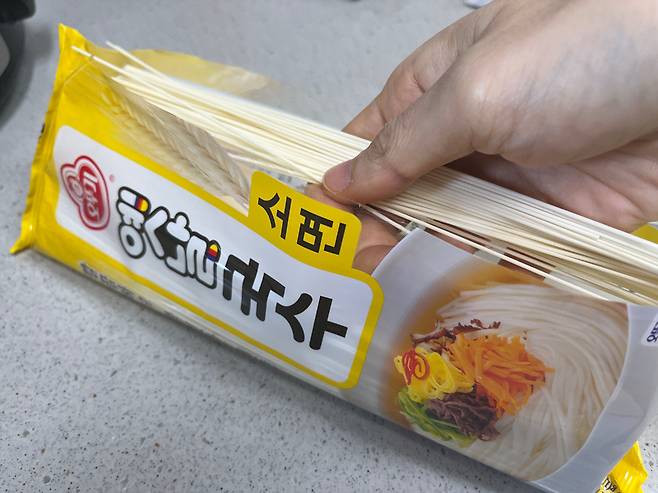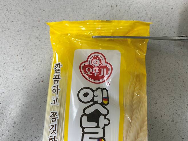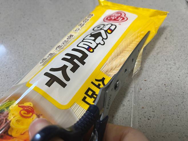국수 봉지를 뜯을 가로로 뜯는 경우가 많을 텐데요. 사실 가로로 뜯어 버리면 국수를 꺼내면서 잘 부러집니다.