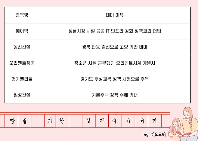 특히, 에이텍, 동신건설, 오리엔트정공, 형지엘리트, 일성건설은 대장주로 꼽히며 높은 관심을 받고 있죠. 하지만 정치 테마주는 급등락 위험이 크기 때문에 신중하게 접근해야 해요.
