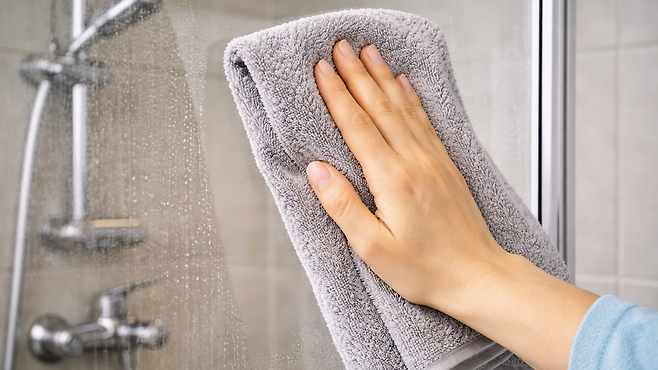 가장 간단한 방법은 샤워 후 물기를 제거하는 것이다. 샤워부스 유리나 타일 표면의 물을 스퀴지로 밀어내면 미네랄 성분이 남을 가능성이 줄어든다.