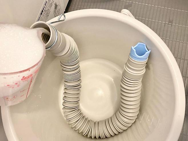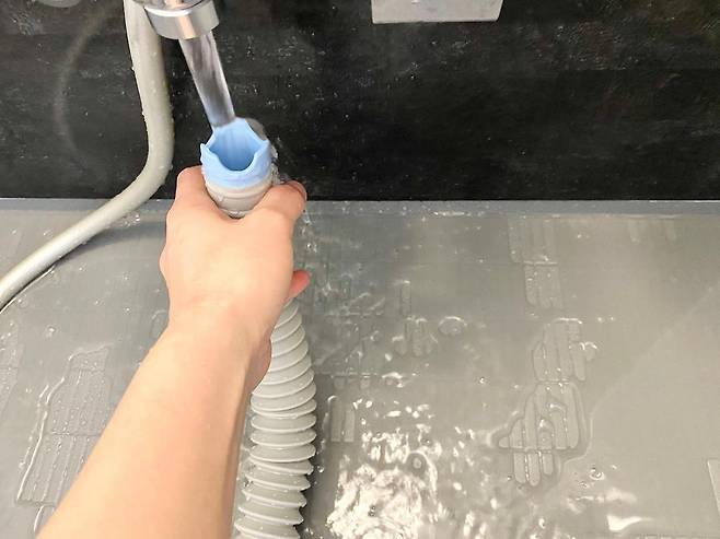 배수 필터와 함께 배수 호스에 고인 이물질과 찌꺼기를 확인, 청소해야 배수 장애를 방지할 수 있다.