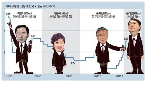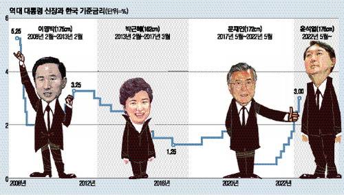 한국 대통령 ‘키’ 따라 기준금리 ‘높이’ 달라졌네…尹 신장은?