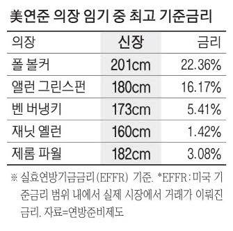 미국 기준금리 움직임에 따라 전세계 금융시장이 요동치고 있는 상황에서 역대 연방준비제도(Fed·연준) 의장의 신장(키)에 따라 기준금리가 들썩였던 사실이 새삼 재조명되고 있다. 이는 키 160cm로 단신인 재닛 옐런 미국 재무장관이 연준 의장으로 재임하던 시절부터 항간에 돌기 시작했다. 1980년대 이후 미국의 기준금리는 장기적 하향추세를 보였는데, 마침 연준 의장들의 신장도 줄어들었기 때문이다.