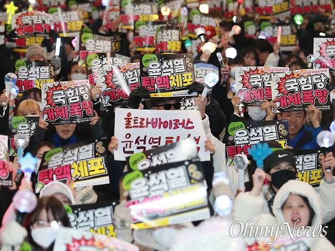 | ▲ 12.3 내란 사태를 둘러싸고 윤석열 대통령이 비상계엄의 정당성을 주장하는 대국민담화에 나선 가운데, 12일 '윤석열 탄핵체포 부산시민대회'에 참석한 시민들이 이를 규탄하고 있다. |