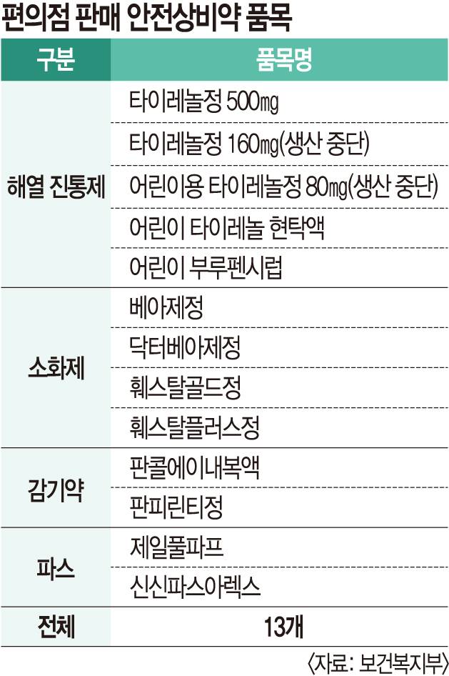 편의점업계는 안전상비약 품목 확대 논의에 나서야 한다고 주장한다. 2012년 약사법 개정으로 13개 품목이 정해진 뒤 10년 넘게 그대로이기 때문이다. 일본은 현재 약 2000종, 유럽은 1만종의 안전상비약품을 편의점에서 취급하고 있다.