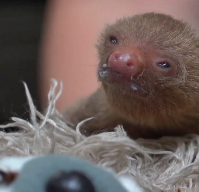 이 아기 나무늘보는 작고 어려서 더욱 귀여운데요.