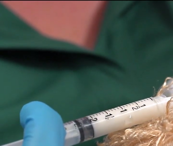 그래서 2시간마다 사람의 손으로 직접 주사기를 이용해 젖을 먹이기로 결정했습니다.