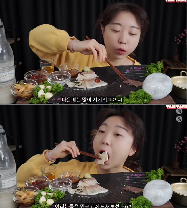 유튜버 얌야미는 지난달 '두 달 기다린 밍크고래'라는 제목으로 막걸리를 옆에 두고 밍크고래 고기를 먹는 8분짜리 영상을 공개했다.