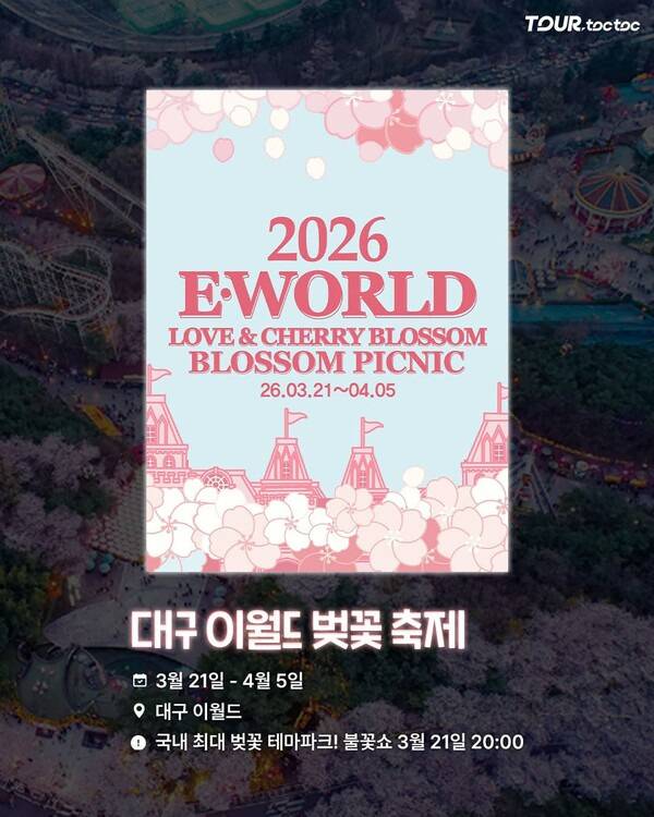 2026 축제는 3월 21일부터 4월 5일까지 대구 이월드에서 열립니다. 개막일인 3월 21일 밤 20시에는 불꽃쇼도 진행될 예정입니다.