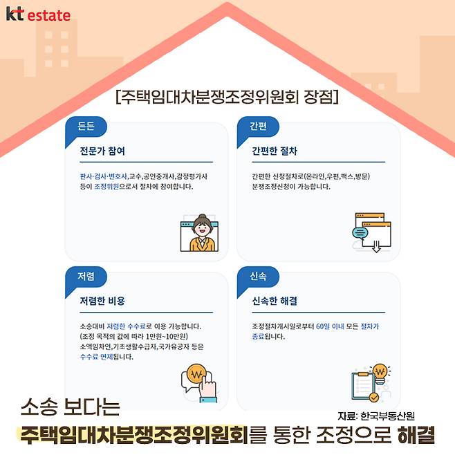 이렇게 집주인과 세입자간 집수리 의무를 제대로 알고 잘 지키면 좋겠지만, 그렇지 않은 경우 갈등이 깊어질 수 있습니다. 이럴 땐 주택임대차분쟁조정위원회를 통해 조정을 신청하는 방법이 있습니다. 주택임대차분쟁조정위원회란 주택 및 상가 임대차와 관련한 당사자간 법률적 분쟁을 신속하고 경제적으로 해결할 수 있는 제도인데요. 임차주택의 유지∙수선 의무에 관한 분쟁 시에도 조정 신청이 가능합니다.