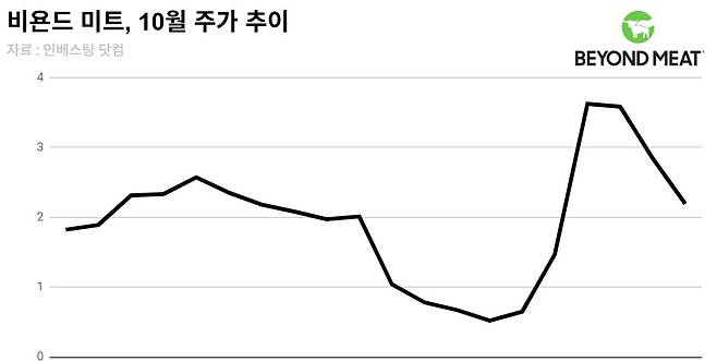 하지만 파티는 오래가지 못했다. 비욘드 미트 주가는 이후 3거래일 연속 내리며 지난 24일 2.19달러로 정규장을 마쳤다. 애프터 마켓에선 2.02달러까지 밀렸다.