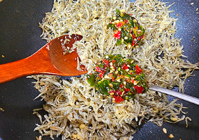 🍶 3. 멸치를 넣고 미림을 약간 뿌려 볶아줍니다.