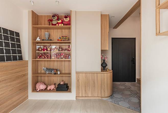 현관의 개방감부터 거실과 주방의 오픈 플랜, 피규어 진열장으로 꾸민 작은방, 안방과 드레스룸까지 신혼부부의 생활 패턴에 맞춘 모던주택 신혼집 인테리어..