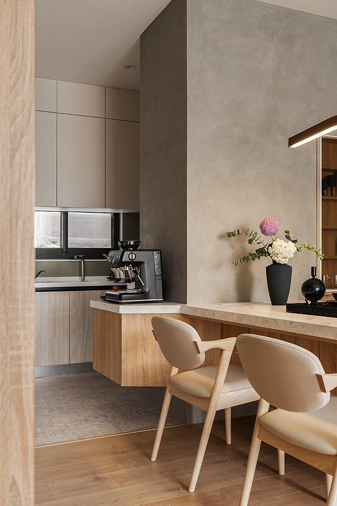 리듬을 일상에 담는다’는 콘셉트로 전반적인 인테리어를 새롭게 진행했으며, 북유럽 미니멀의 절제와 와비사비의 고요함을 조화시켜 자연스럽고 깊이 있는 분위기를 완성했습니다.