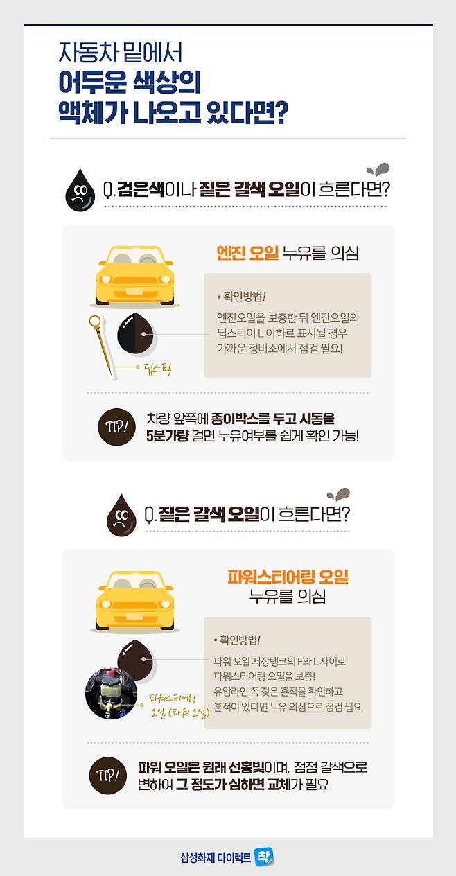 오늘은 자동차가 흘리는 눈물 아닌, 흘러나온 액체에 대해 알아보았는데요!
