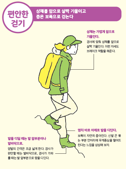 · 산을 오르내릴 때 무릎을 펴지 않는다.