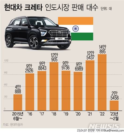 인도 자동차 시장은 세계에서 가장 치열한 격전지 중 하나다. 현지 브랜드 타타 모터스와 일본의 마루티 스즈키, 그리고 중국 브랜드들까지 각축전을 벌이고 있다. 하지만 크레타는 이 모든 경쟁을 압도하며 독보적인 위치를 확보했다. 올해 6월에도 인도 SUV 판매 1위를 차지한 데 이어, 상반기 전체 베스트셀링 차량으로 등극했다.