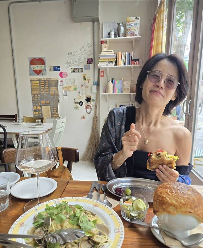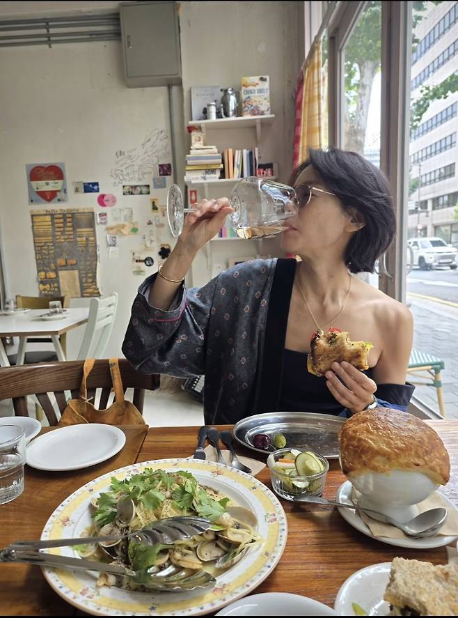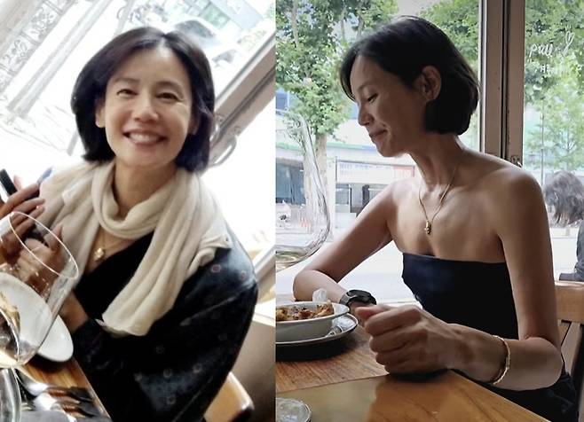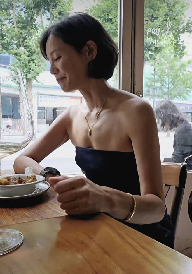 배우 김지호는 내추럴한 아름다움과 편안한 분위기를 강조한 우아한 미니멀리즘 스타일을 완성했습니다.