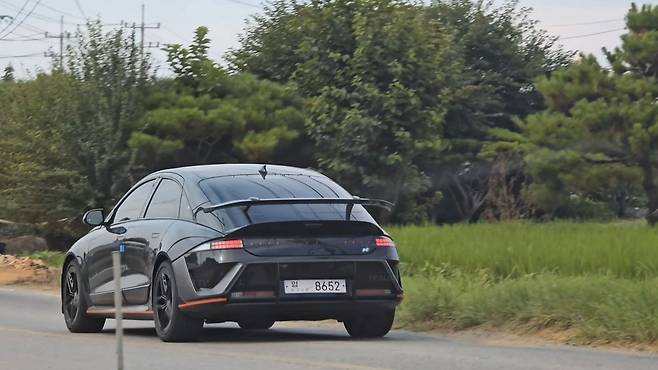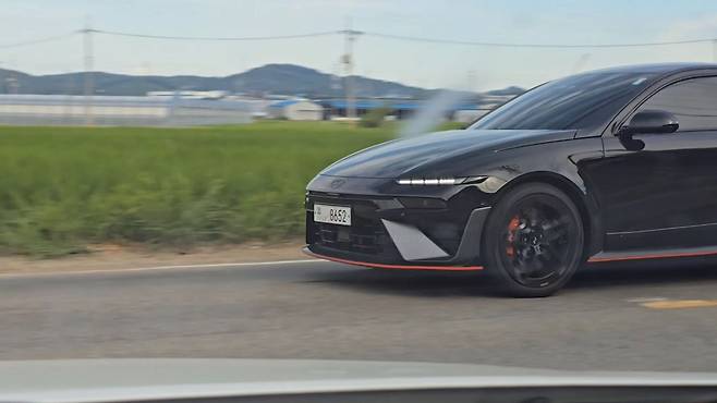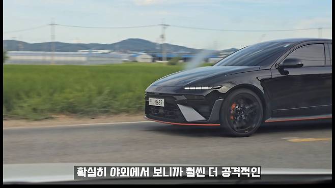실외에서 확인된 블랙 색상의 아이오닉 6N은 실내에서 봤을 때보다 훨씬 더 공격적인 이미지를 보여준다고 평가했다. 특히 야외 환경에서는 차량이 주는 무게감이 한층 더 강조되면서 고성능 차량다운 존재감을 드러내는 것으로 확인됐다.