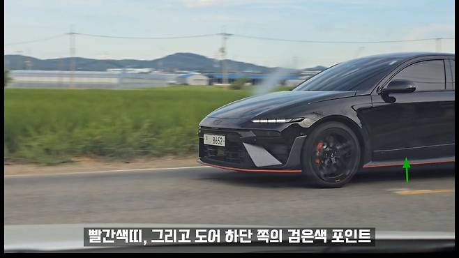 블랙 색상의 아이오닉 6N에서 가장 주목받는 부분은 차량 곳곳에 적용된 빨간색 포인트와의 조화다. 빨간색 브레이크 캘리퍼와 차량 하단을 지나는 빨간색 라인, 그리고 도어 하단 쪽의 검은색 포인트가 전체적인 디자인 통일감을 완성하고 있다는 평가가 나온다.