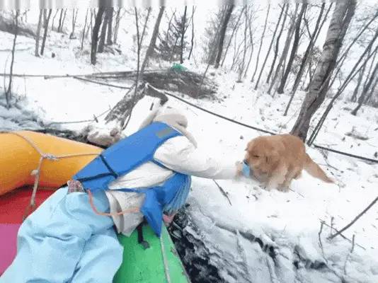 매서운 추위에도 물살을 가르며 낭만을 만끽하던 한 여행객 앞에, 통통하게 살이 오른 골든 리트리버 한 마리가 폴짝 나타났습니다.