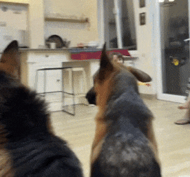 견주인 아빠와 아이는 장난감을 가지고 놀고 있었습니다. 반려견은 처음에는 지켜보기만 하다가 상황이 꼬마 주인에게 불리해지자 한 마리가 가만히 앉아있지 못하고 나섭니다.