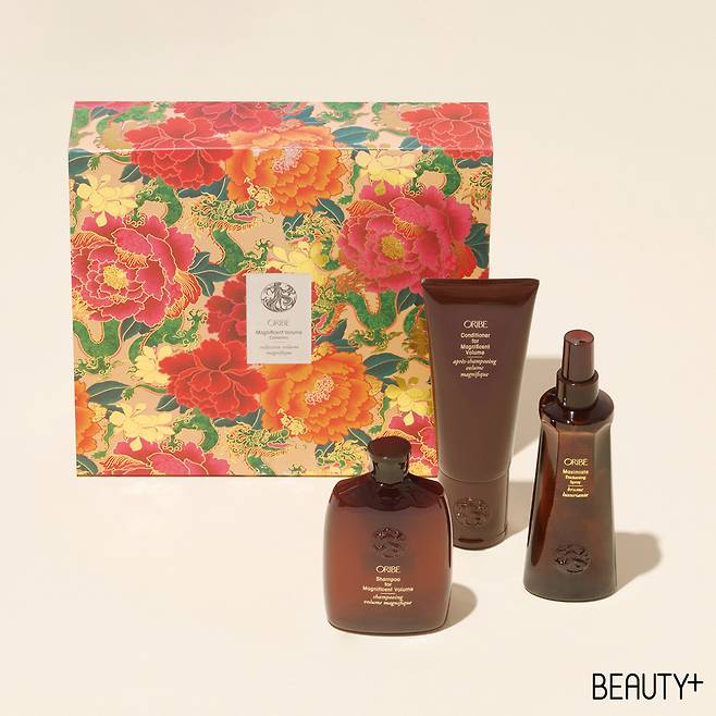 오리베의 베스트셀링 제품으로 구성한 뉴이어 컬렉션. 글로벌 아티스트 ‘크리스 춘(Chris Chun)’의 화려하고 과감한 색채가 그대로 담긴 패키지가 인상적이다. 청룡과 작약을 모티프로 새해에 대한 설렘과 번영을 표현했다고. 샴푸 250ml, 컨디셔너 200ml, 스프레이 200ml 17만9천원.