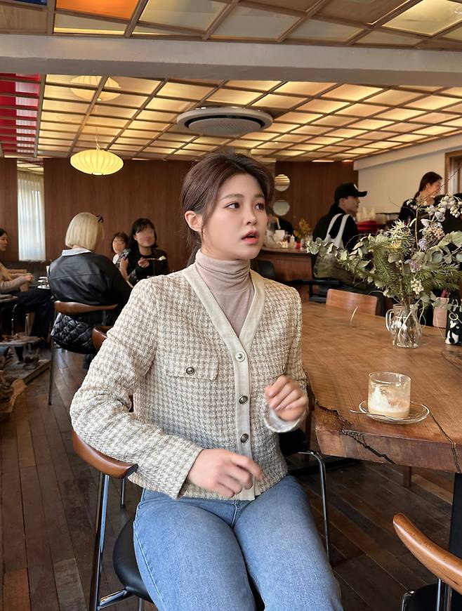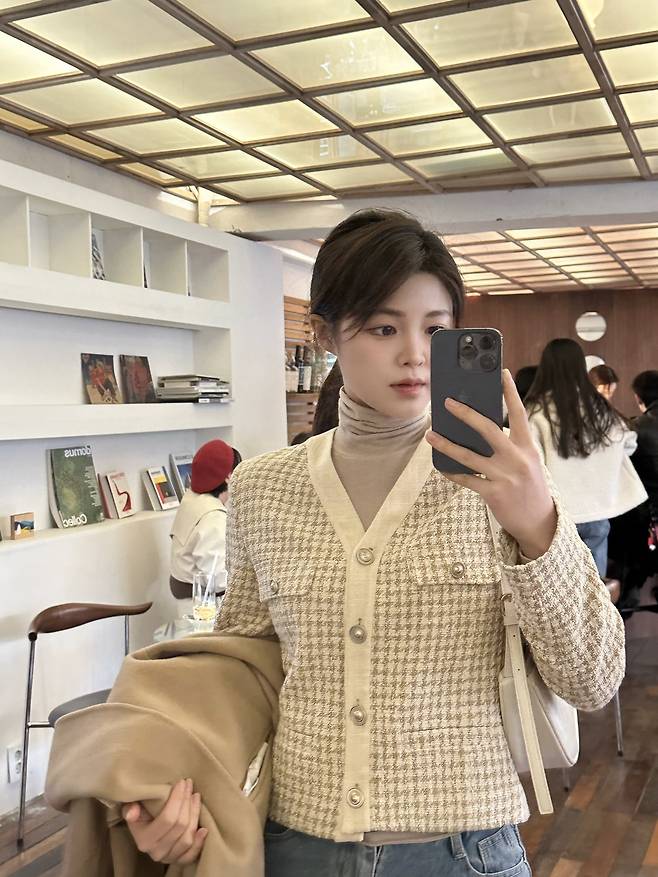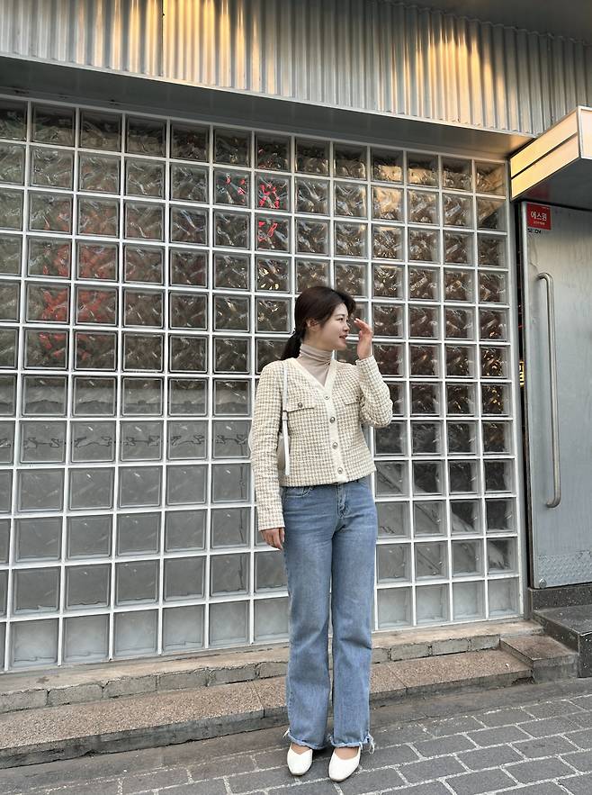 트위드 느낌을 낸 크롭 재킷을 입어봤어요