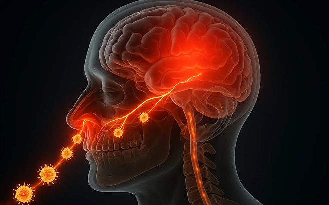 연구 결과에 따르면, 실험 쥐에게 HSV-1을 코를 통해 감염시킨 뒤 뇌 염증, 기억력 저하, 불안 증가 등 신경학적 증상이 관찰되었다.