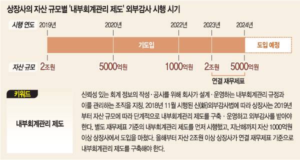 신외감법의 핵심 가운데 하나인 내부회계관리 제도는 2018년 11월 첫발을 디딜 때 모든 상장사와 자산 1000억원 이상 비상장 주식회사로 대상을 광범위하게 설정했다. 하지만 비용 부담을 호소하는 경영계 요청과 코로나19에 따른 경영난이 맞물리면서 올해 별도 재무제표 기준 내부회계관리 제도 도입을 앞둔 1000억원 미만 상장사를 대상에서 빼는 등 ‘면죄부’를 점차 확대해왔다.