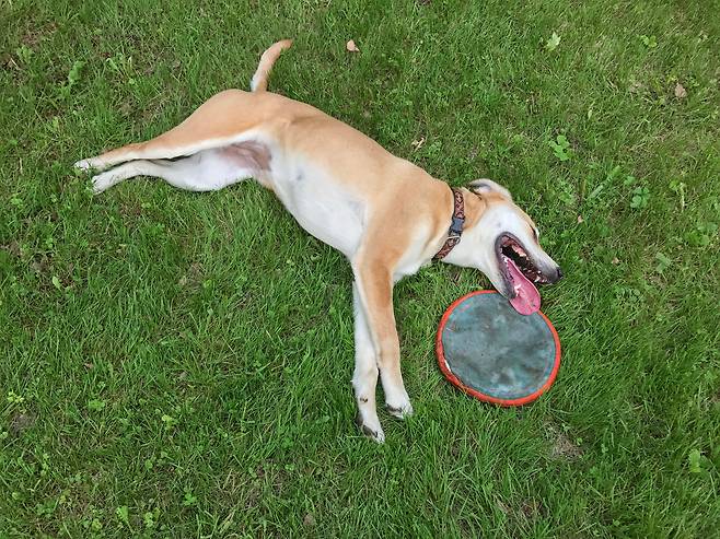원반 던지기 놀이는 보더콜리, 폭스테리어와 같이 활동량이 많은 중대형견이 주로 하는 놀이예요. 달리는 것을 좋아하는 소형견도 할 수 있지만, 무리해서 억지로 시키는 것은 지양해야 합니다.