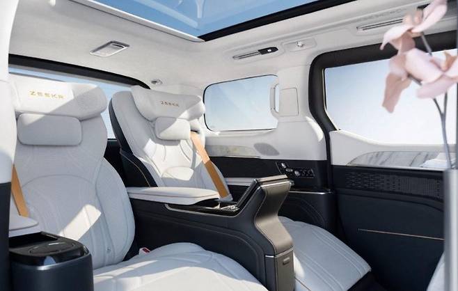 이 미니밴의 실내는 기존 미니밴 개념과 선을 긋는다. 2열에는 독립형 VIP 시트가 기본으로 들어가며, 열선·통풍·마사지 기능은 기본 사양에 가깝다. 여기에 접이식 테이블, 대형 루프 디스플레이, 냉장 기능 수납공간, 개별 무드 조명, 고급 오디오 시스템까지 더해진다.
