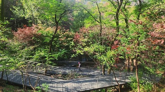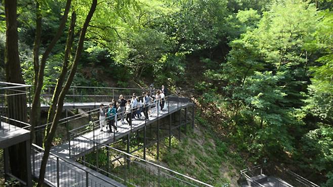 완만한 경사의 지그재그 데크길은 휠체어, 유모차도 자유롭게 이동 가능하며, 기존 수목을 보호하는 친환경 구조 덕분에 숲은 본래의 생태를 유지하고 있습니다.