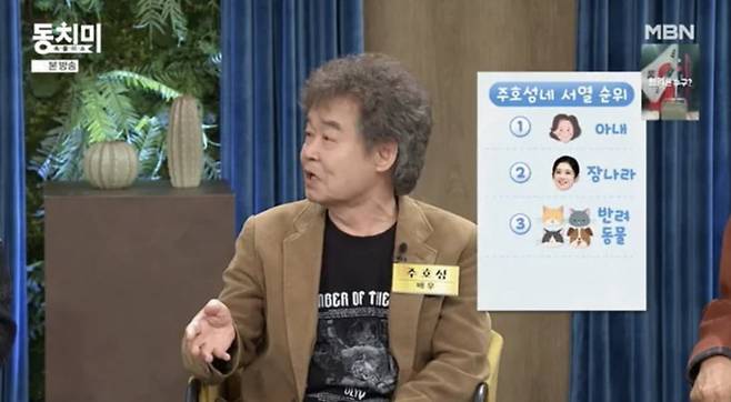 이어 주호성은 "이뿐만 아니다. 에어컨을 틀고 자냐, 끄고 자냐도 심각한 문제"라며 "나이가 일흔이 넘어 내가 회사 근처에서 3~4년 이상을 (혼자) 살고 있다. 그러니까 얼마나 편안한지"고 혼자 살고 있다고 밝혔습니다.