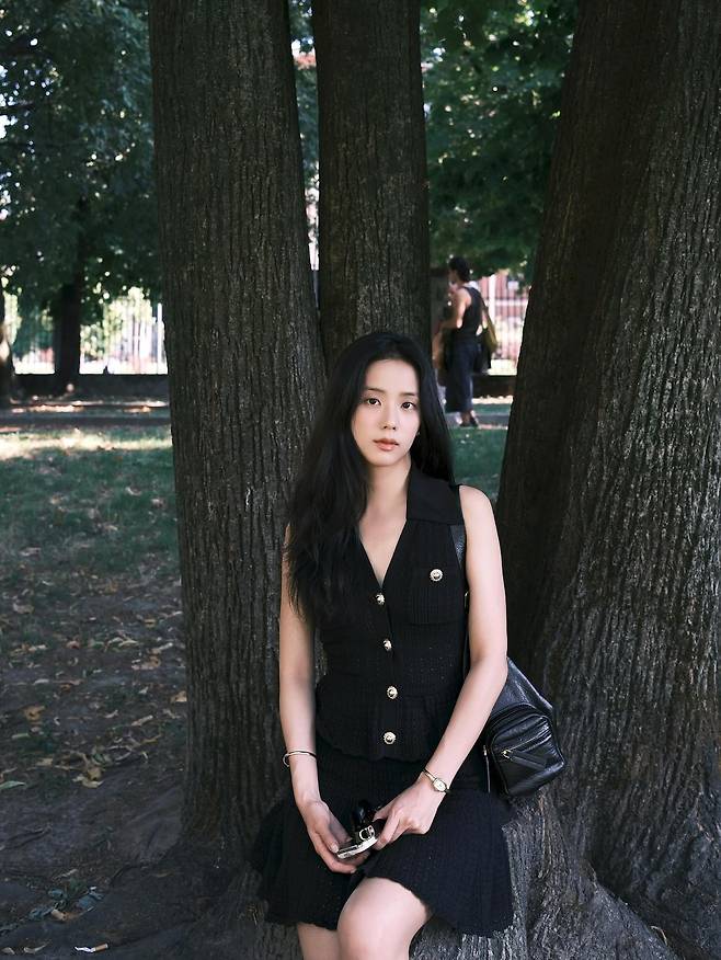 블랙 체인백과 얇은 골드 주얼리는 과하지 않게 룩의 완성도를 높였고, 자연광이 얼굴선을 따라 은은하게 떨어지며 피부 톤을 맑게 밝혔어요.