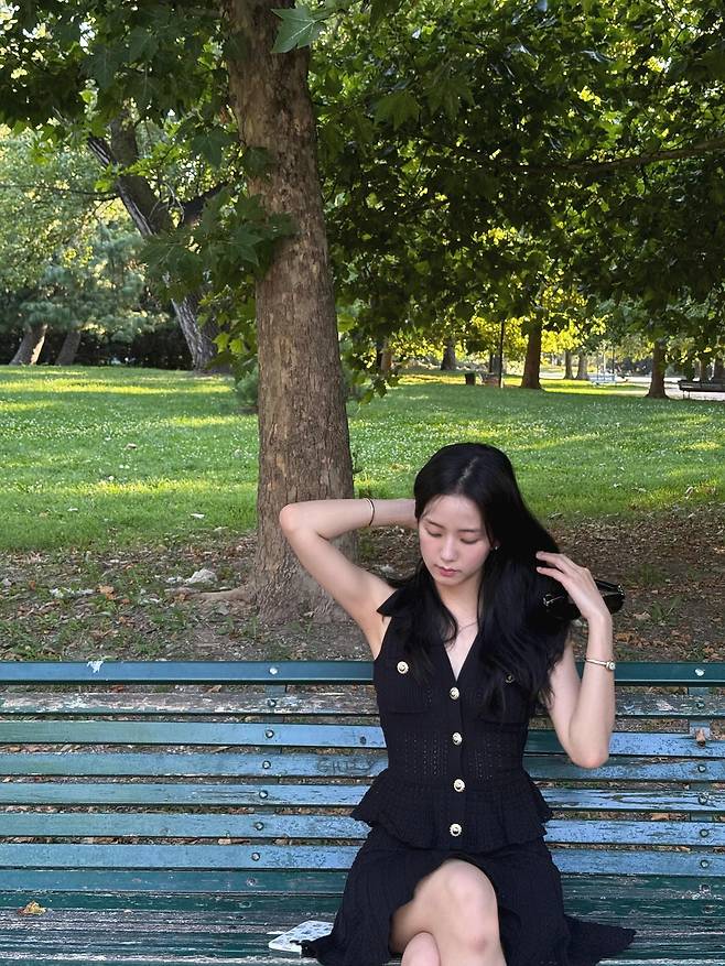 의자에 앉아 머리카락을 넘기는 컷에서는 목선과 어깨 라인이 한층 또렷하게 드러나며 시원한 인상을 주었어요.