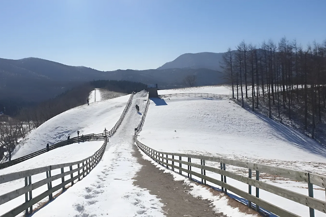 광활한 목초지를 따라 걷는 산책로는 경사가 완만해 아이들과 함께 천천히 걷기에 좋고, 곳곳에 놓인 포토스팟은 여행의 감성을 자연스럽게 채워준다. 특히 겨울철에는 바람결에 흩날리는 눈발과 고요한 능선이 어우러져, 도시에서는 만나기 어려운 한적하고 평화로운 분위기를 만난다.