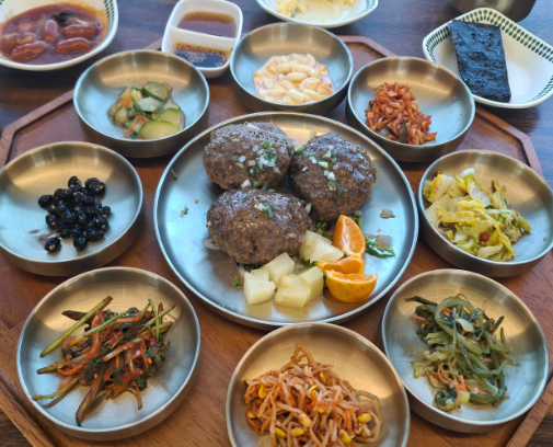 ▶ 주문과 동시에 나오는 수제 떡갈비 정식 구성
