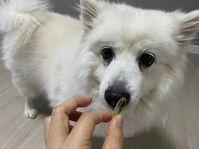 강아지 눈 건강에 도움이 되는 루테인, 오메가-3 등의 성분이 들어 있는 영양제입니다. 마찬가지로 캡슐로 급여해도 되고, 사료나 간식에 내용물을 뿌려줘도 좋습니다.