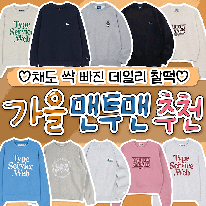 채도 싹 빠진 브랜드별 가을 데일리 맨투맨 추천!