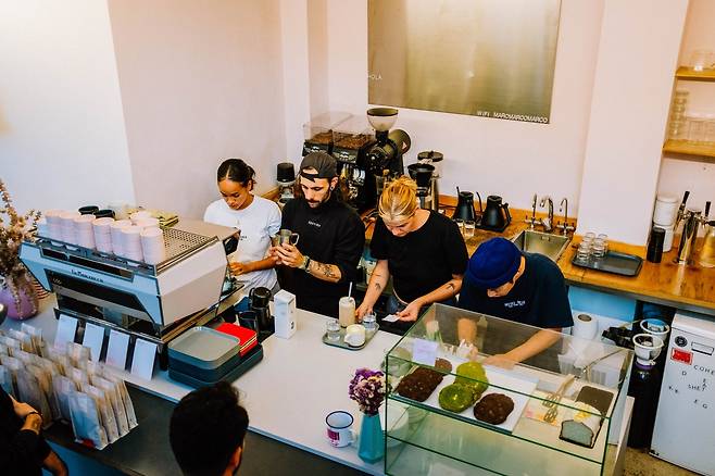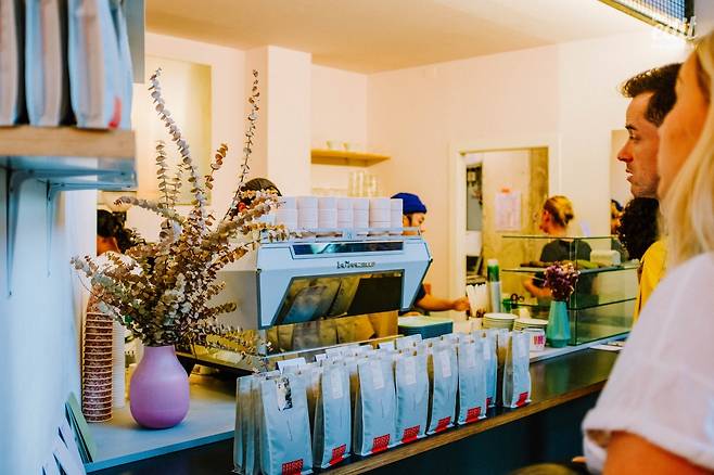 바르셀로나의 첫날 가우디 건축 투어의 마지막으로 성가족 성당을 살펴보고, 15분 거리에 위치한 쓰리막스 커피 매장까지 걸었다. 쓰리막스 커피는 바르셀로나 중심지에서 멀지 않지만, 조용한 주택가에 위치하고 있다. 일정이 빠듯해 매장 영업시간 끝날 즈음에 도착했는데, 매장 내외부의 후끈한 분위기가 심상치 않았다. 뭐랄까? 현지 주민들과 밀착된 스페셜티 커피 매장 특유의 아우라가 물씬 풍겨나왔다.