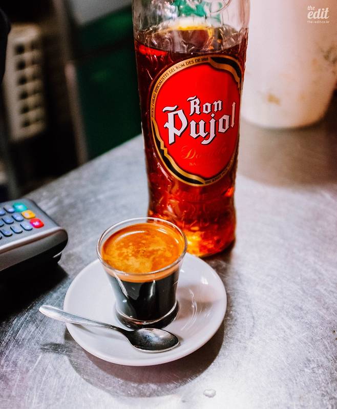 바르셀로나 에스프레소바에서 마셨던 가장 인상 깊던 커피는 비치 주변 꼰마요 레스토랑에스프레소바에서 마셨던 럼에스프레소. 뜨겁고 진득한 로부스타 커머셜 블렌딩 에스프레소에 뿌욜로니 럼샷이 추가된 알코올 덕택에 강력한 각성과 이완을 동시에 경험하는 느낌이었다. 이탈리아 커피 산업이 전문 에스프레소바를 통해서 명맥을 유지한다면, 스페인의 커피바는 식당에서 식후 디저트와 함께 커피를 제공하는 느낌에 가깝다. 최근에는 바르셀로나를 중심으로 남유럽의 대표적 스페셜티 커피 매장들이 급격하게 발전하고 있어 동선이 가깝다면, 바르셀로나의 스페셜티 커피 매장을 방문해 볼 것을 추천한다.