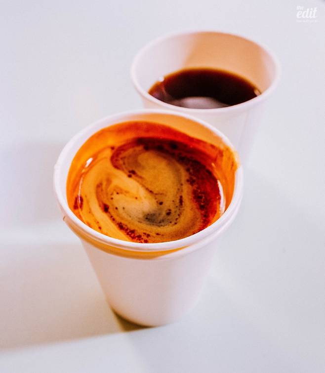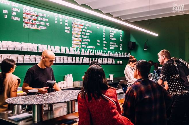 커피 메뉴는 에스프레소, 코타도, 아메리카노, 카푸치노, 플랫화이트 등등. 에스프레소 머신은 피렌체에서 제작한 라마르조코의 최신형 Kb90. 기존의 온도 안정성과 조절 능력이외에 자동세척, 포터필터 직열투입, 열보전과 같이 바리스타들의 부상방지와 에너지 절약을 통한 환경 보호 등의 주제를 잘 표현했다.