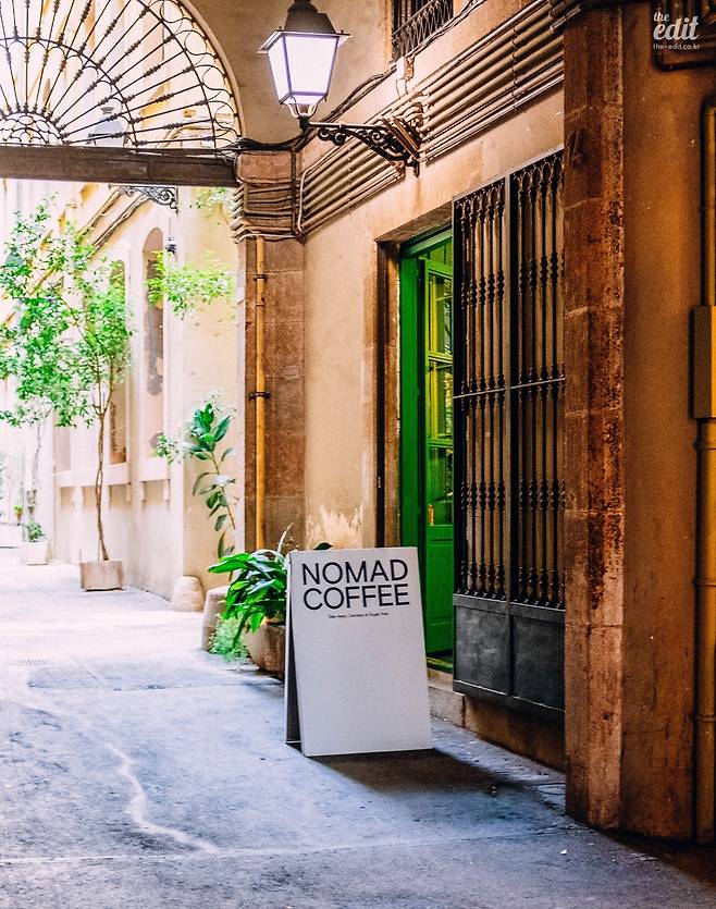 한국에도 진출한 노마드 커피는 자타가 공인하는 바르셀로나를 대표하는 스페셜티 커피 매장이다. 최근 쓰리막스의 상승세가 뜨겁지만, 인지도는 노마드커피가 높다. 매장이 몇곳 있는데, 가우디 건축의 걸작, 까사 바뜨요에서 도보로 접근이 가능한 보른지구 매장을 방문했다. 노마드 커피는 스페인식 골목길 안에 위치하고 있어 초행자들이 조금 헛갈렸는데, 매장 내부에 현지 지역 주민들 이외에도, 유명세를 좇아 어렵게 방문하는 커피 애호가들이 많았다. 매장의 첫인상은 강렬한 색감과 남유럽 특유의 다이나막한 분위기와 함께 집중력있는 바리스타들의 퍼포먼스가 잘 표현되었다.