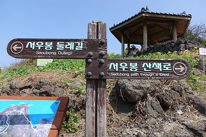 서우봉은 완만한 등성이가 두 개의 봉우리를 이루는 원추형 화산체다. 높이는 약 111m로 부담이 크지 않아 30~40분이면 한 바퀴를 도는 데 충분하다. 또한, 경사가 완만해 남녀노소 누구나 가볍게 오를 수 있는 점도 장점이다.