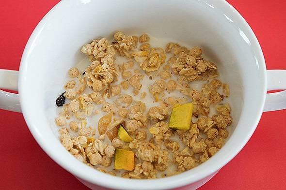 : 시리얼 한 컵 + 찬 우유