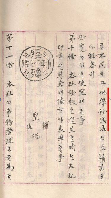 제국익문사의 운영지침 비보장정에 따르면 '장정 제9조 보고서는 묵사법을 피해 화학비사법으로 하라'는 문구가 있다. 화학비사법은 과실즙이나 화학용액을 이용해 투명하게 글씨를 쓴 다음 읽을 때는 열이나 또 다른 화학용액을 사용하는 방식이다. 이렇게 작성한 문서를 황제에게 보고할 때에도 제국익문사를 통한 것인지 확인할 수 있도록 왕실을 자두꽃 무늬와 성충보좌라는 글씨가 새겨진 제국익문사 고유의 인장을 사용했다. 이러한 정보의 수집과 전달 체계가 있었기에 대한제국 정보 활동을 펼칠 수 있었다.